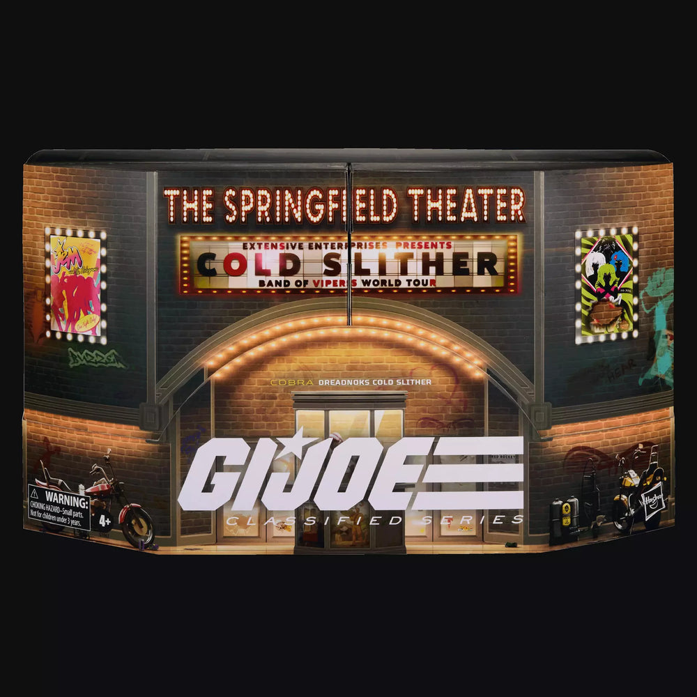 The collectible box features a recreation of the renowned Springfield Theater’s exterior, transporting you to an unforgettable concert experience complete with Easter eggs and notable characters. Unfold the box to find Cold Slither, ready to rock the stage.