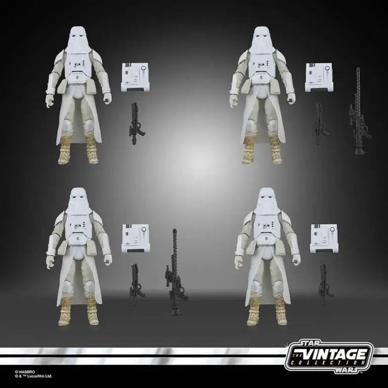 Snowtroopers are stormtroopers trained for operations in arctic conditions and equipped with specialized gear to protect them against the cold. Celebrate the legacy of STAR WARS with premium vehicles, playsets, and action figures from STAR WARS: THE VINTAGE COLLECTION. Based on snowtroopers from STAR WARS: THE EMPIRE STRIKES BACK, these 3.75-inch-scale figures make great additions to any fan’s collection. This troop-building pack comes with removable backpacks, 4 blaster accessories, and 2 heavy blaster accessories. Inspired by the original line, these collectibles feature premium detail and design across product and packaging, as well as collector-grade deco that fans have come to know and love. Reimagine favorite scenes with other THE VINTAGE COLLECTION figures from the STAR WARS galaxy (each sold separately, subject to availability).