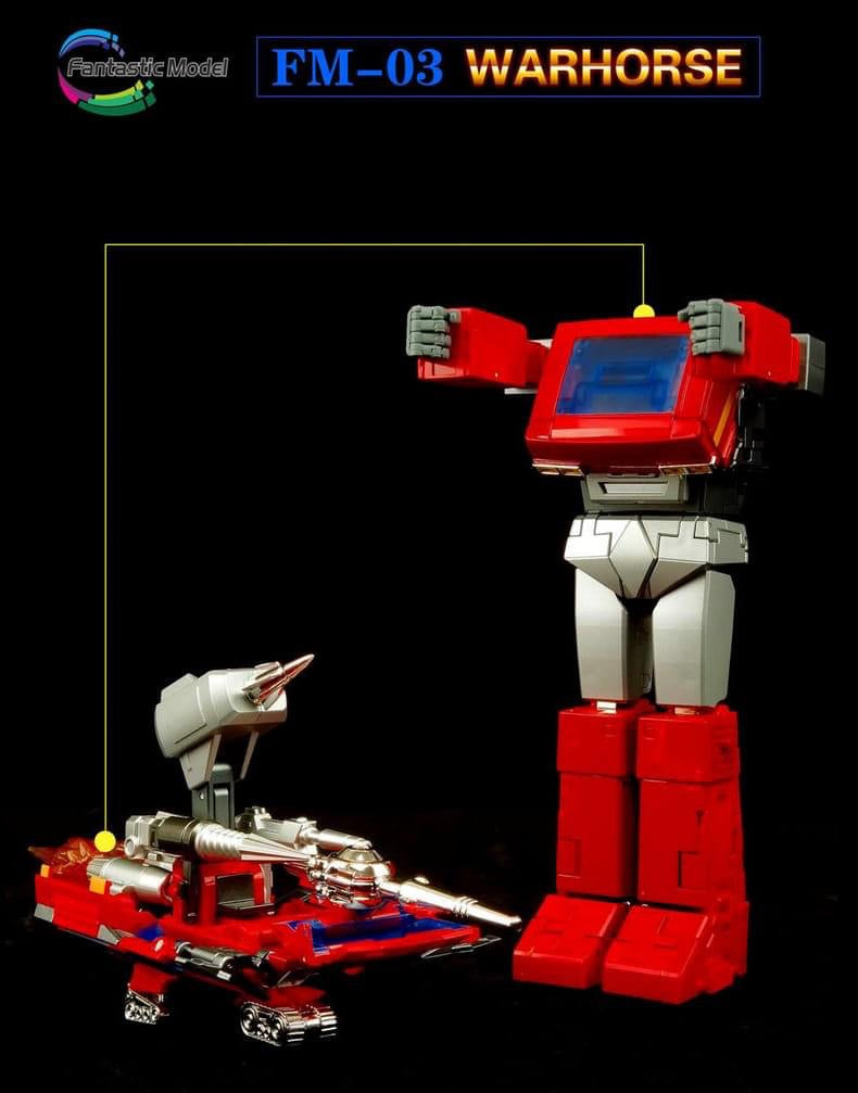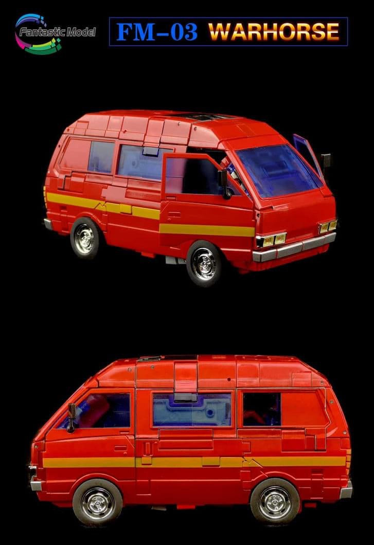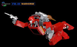 From Fans Toys comes FM-03 Warhorse! This figure converts from robot to minivan and includes several alternate faces and weapon accessories.