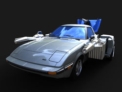 The XTransbots Maedas figure stands about 6.7 inches tall in robot mode and transforms into a car. Maedas features real rubber tires, doors that open and close, as well as a gun and shooting effects!